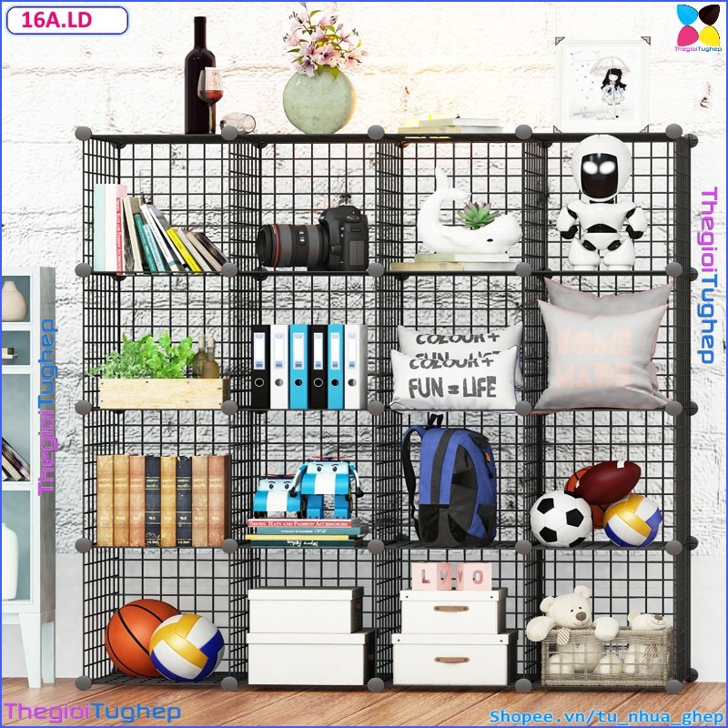 Tủ lưới sắt lắp ghép đa năng hiện đại để sách, đồ dùng trang trí phòng làm việc 16 ô