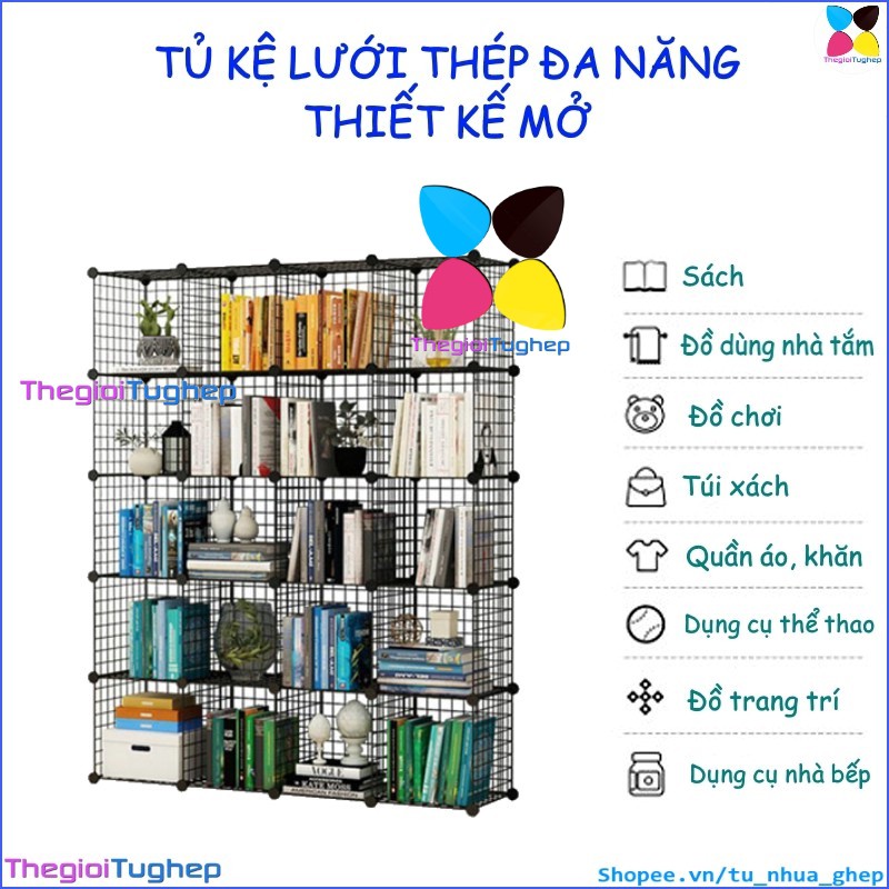 Tủ lưới sắt lắp ghép đa năng hiện đại để sách, đồ dùng trang trí phòng làm việc 20 ô