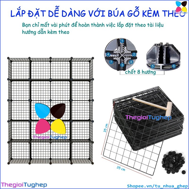 Giới thiệu Tủ lưới sắt lắp ghép đa năng hiện đại để sách, đồ dùng trang trí phòng làm việc 20 ô