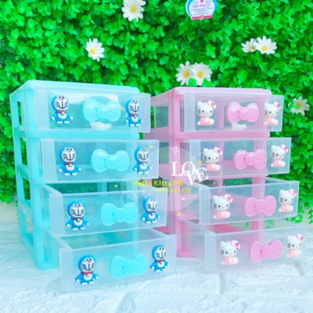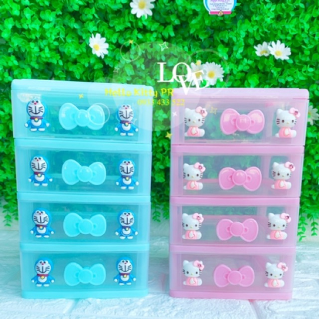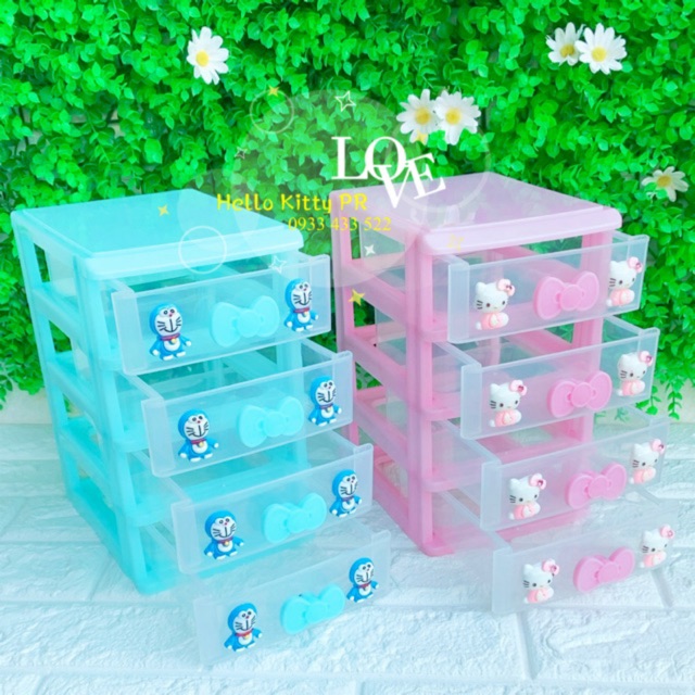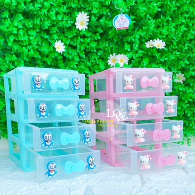 Tủ mini 4 tầng đựng phụ kiện Hello Kitty - Doremon Doraemon