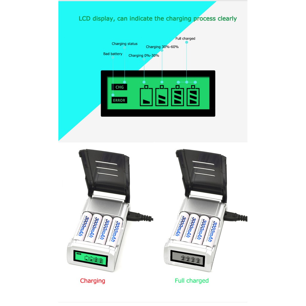 Giới thiệu [TỰ NGẮT KHI ĐẦY] Sạc màn hình LCD C905W đa năng sạc pin tiểu ,pin đũa AA ,AAA kèm 4 pin (tùy thuộc bạn chọn)