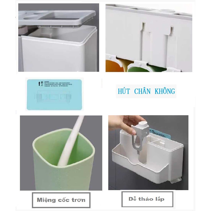 Điểm nổi bật:- Bộ Đựng Bàn Chải Và Kem Đánh Răng 4 Cốc với cấu tạo bên phải là dụng cụ lấy kem đánh răng vô cùng tiện lợi, phía trước là móc treo bàn chải và ly giúp giữ sạch vật dụng cá nhân khỏi bụi bẩn và vi khuẩn gây hại, còn bên trên là kệ đựng các vật dụng cần thiết như sữa rửa mặt, dầu gội, sữa tắm…hay các vật dụng nhà tắm khác.