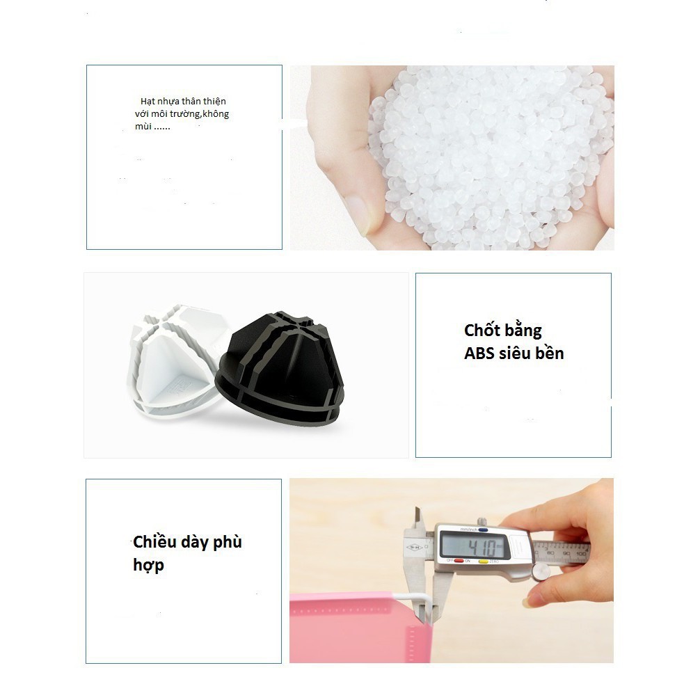 2. Chốt nối được làm từ nhựa ABS vô cùng bền bỉ, bảo đảm sự liên kết chắc chắn giữa các khung thép. Chốt nối có 8 khe nối đa năng để liên kết các góc khung thép của tấm ghép.