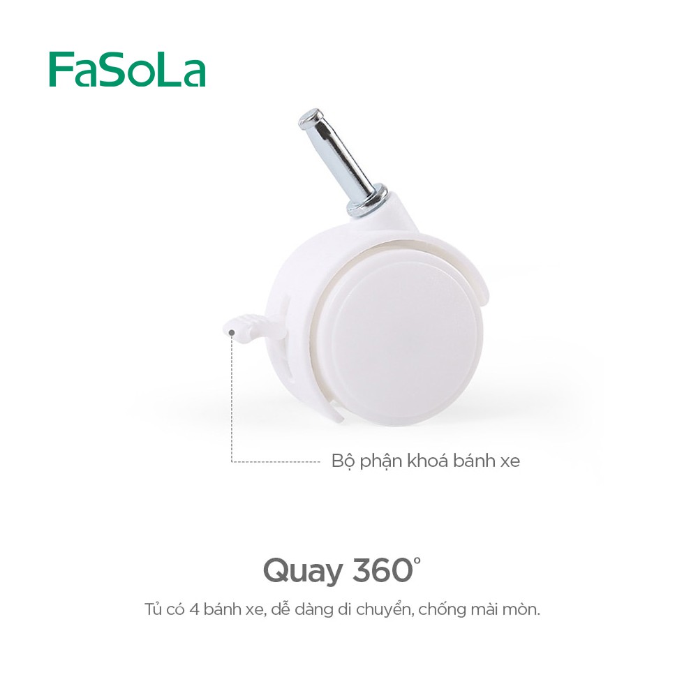 Tủ có 4 bánh xe xoay 360độ, dễ dàng di chuyển, có bộ phận khóa bánh xe.
