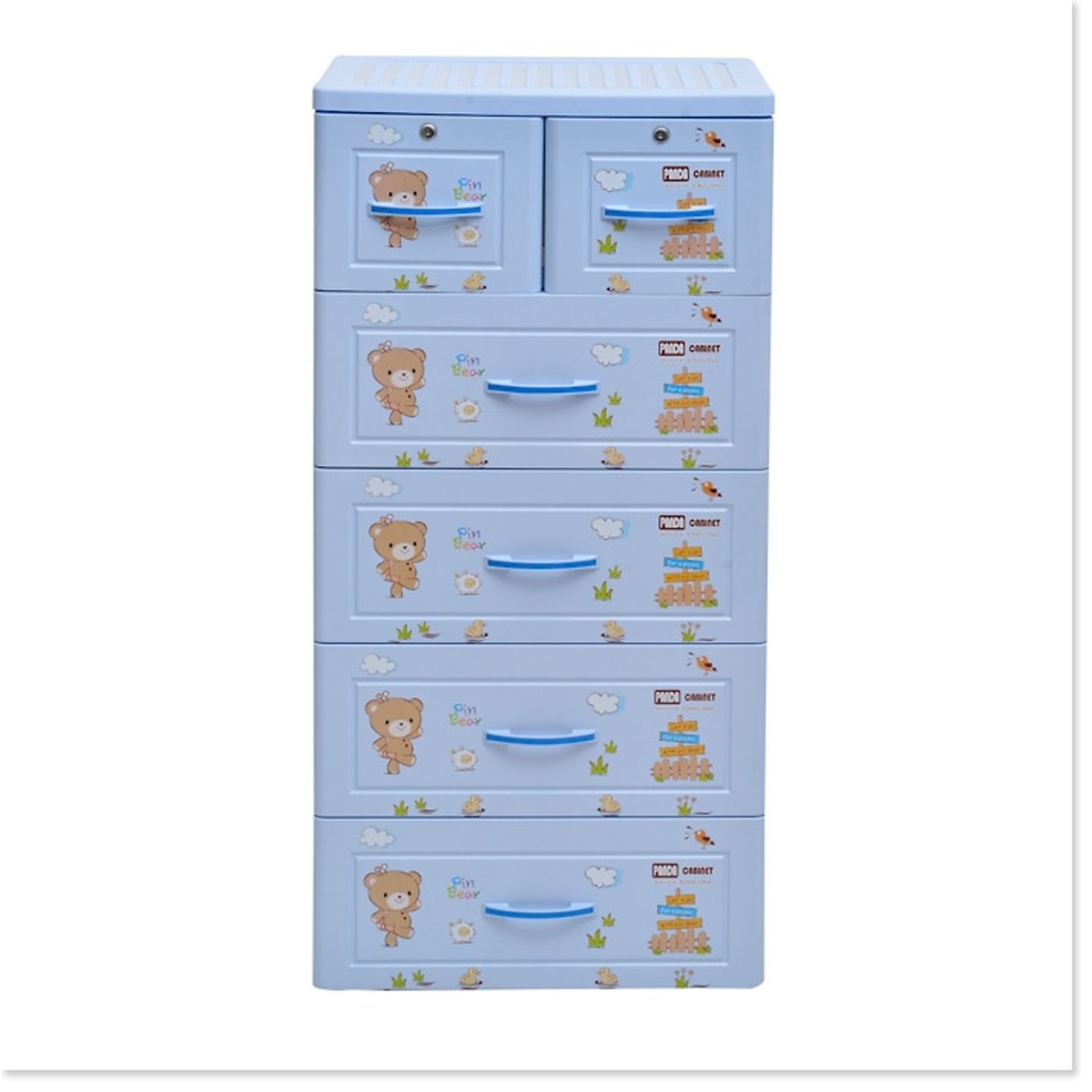 Tủ nhựa Panda Song Long 5 tầng có khóa có 4 màu sắc cho bạn lựa chọn, cùng với các họa tiết bắt mắt đáng yêu kích thích sự thích thú của trẻ nhỏ.