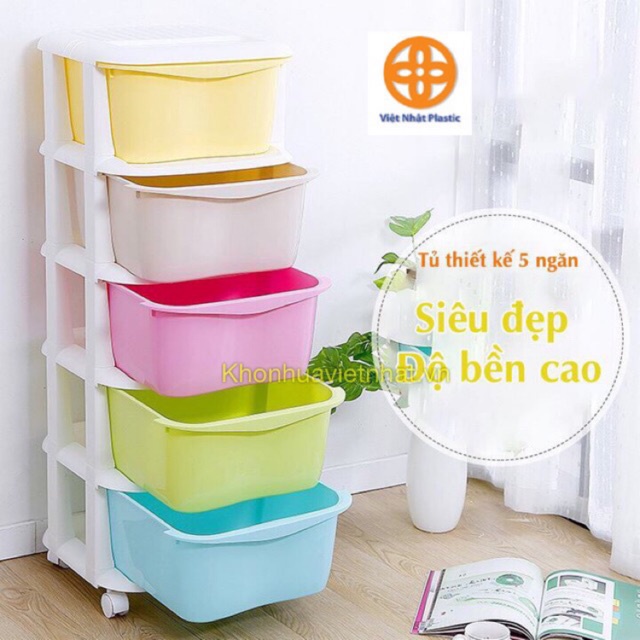 - Tủ nhựa đa sắc 5 tầng Việt Nhật với kiểu dáng độc đáo với 5 ngăn với 5 màu sắc đẹp, sử dụng để đựng đồ chơi, giầy hoặc các vật dụng có kích thước vừa phải rất tiện lợi, cho bạn và gia đình đựng được nhiều quần áo và các vật dụng khác nhau.
