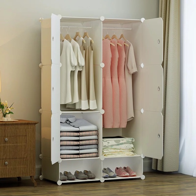 - Có thể móc, xếp quần áo hoặc để sách vở thoải mái, mỗi ô có thể chiu lực từ 12-15kg