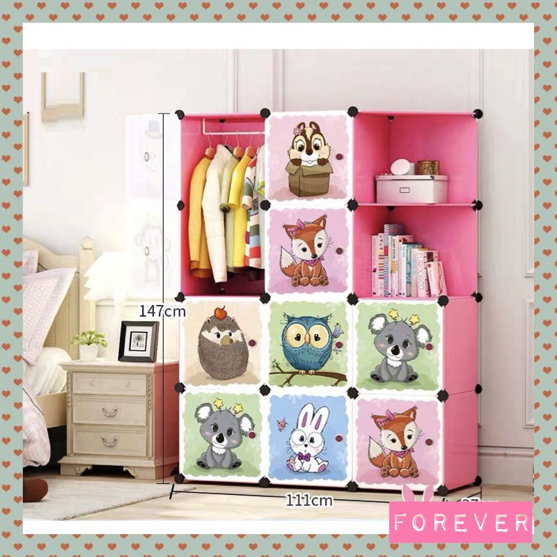 Nhà cửa & Đời sống > Nội thất > Tủ bếp || Tủ nhựa cho bé 12 ô ghép màu hồng, cửa hoạt hình động vật dễ thương, 1 treo ( 2 ô), 2 xéo kiểu 3x4 sâu 47cm - BH 1 nămCòn hàng