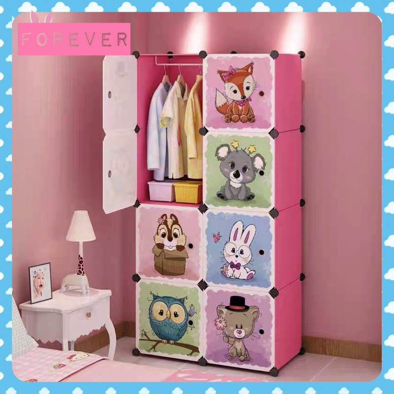 Tủ nhựa cho bé lắp ghép 8 ô màu hồng, cửa hoạt hình động vật dễ thương gọn nhẹ, size to sâu 47 - bảo hành 1 năm 1 đổi 1