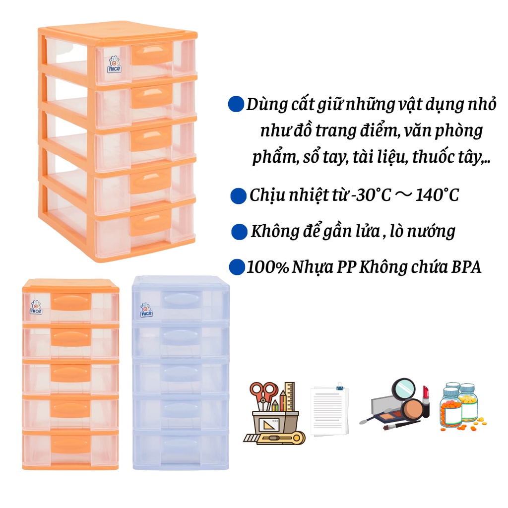 Tủ nhựa đa năng 5 ngăn đựng đồ để bàn tiết kiệm không gian 100% nhựa PP Đại Đồng Tiến an toàn sức khỏe