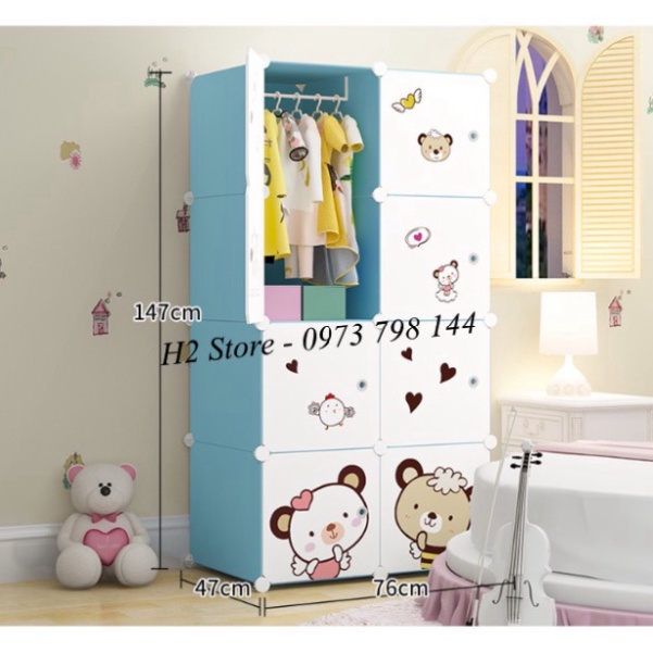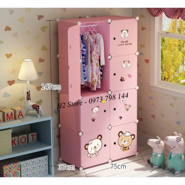 TỦ NHỰA ĐA NĂNG 8 Ô CỬA GẤU TREO ĐỒ THÔNG MINH sâu 47cm