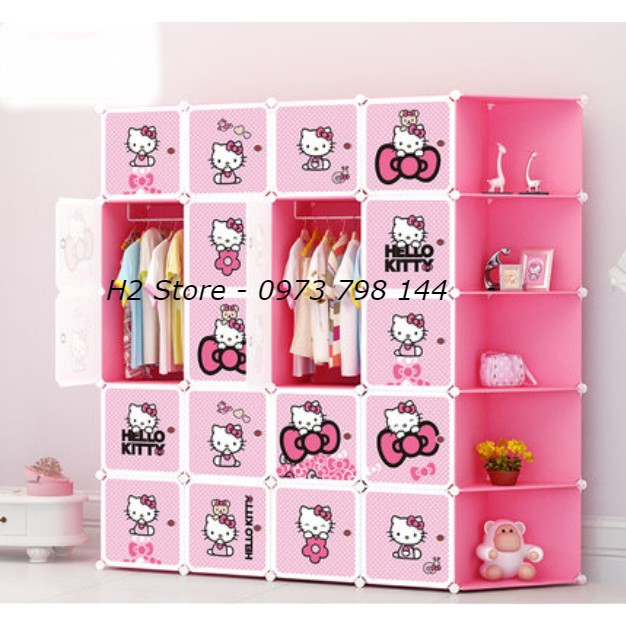 Nhà cửa & Đời sống > Nội thất > Tủ bếp || TỦ NHỰA ĐA NĂNG LẮP GHÉP THÔNG MINH 25 Ô (GỒM 5 KỆ GÓC) CỬA KITTY CHẤM BI DỄ THƯƠNG CHO TRẺ sâu 47cm, vách hồngCòn hàng