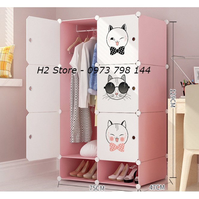 TỦ NHỰA ĐA NĂNG THÔNG MINH ĐỂ ĐỒ CHO BÉ LẮP GHÉP 6 Ô VÀ 2 Ô GIÀY CỬA MÈO NƠ sâu 47cm🎯 Kích thước sau khi lắp: cao 1m30, ngang 74cm, sâu 47cm