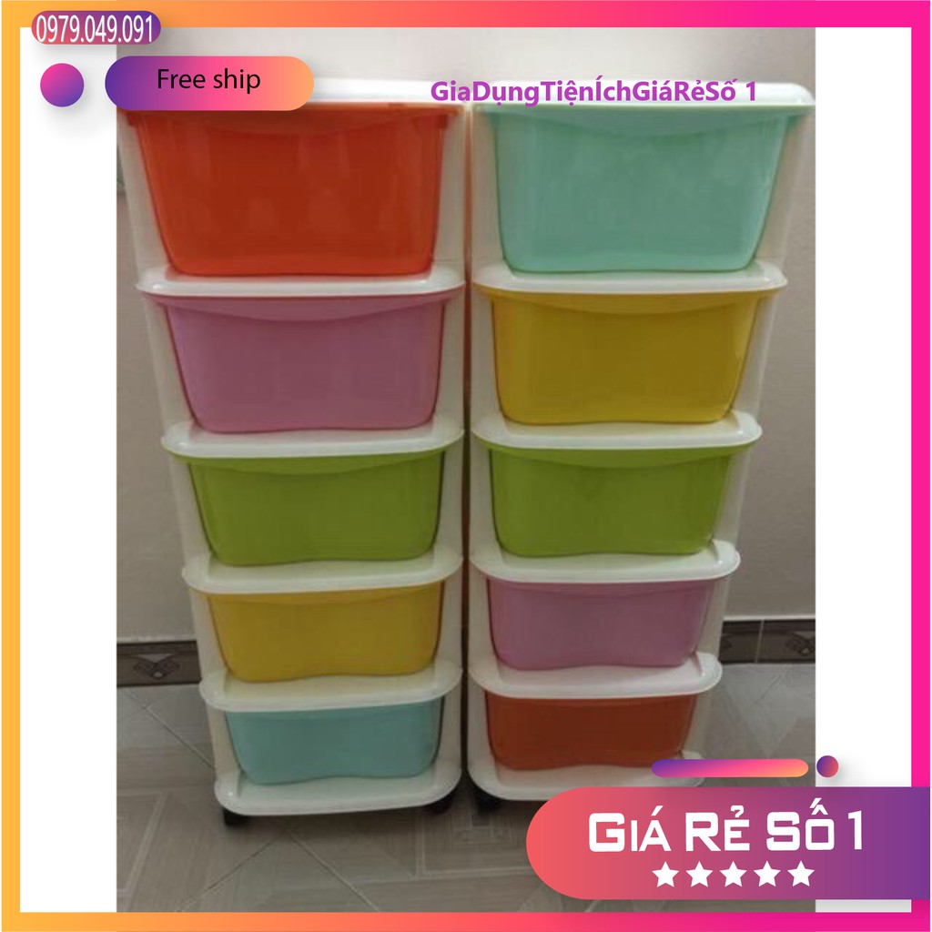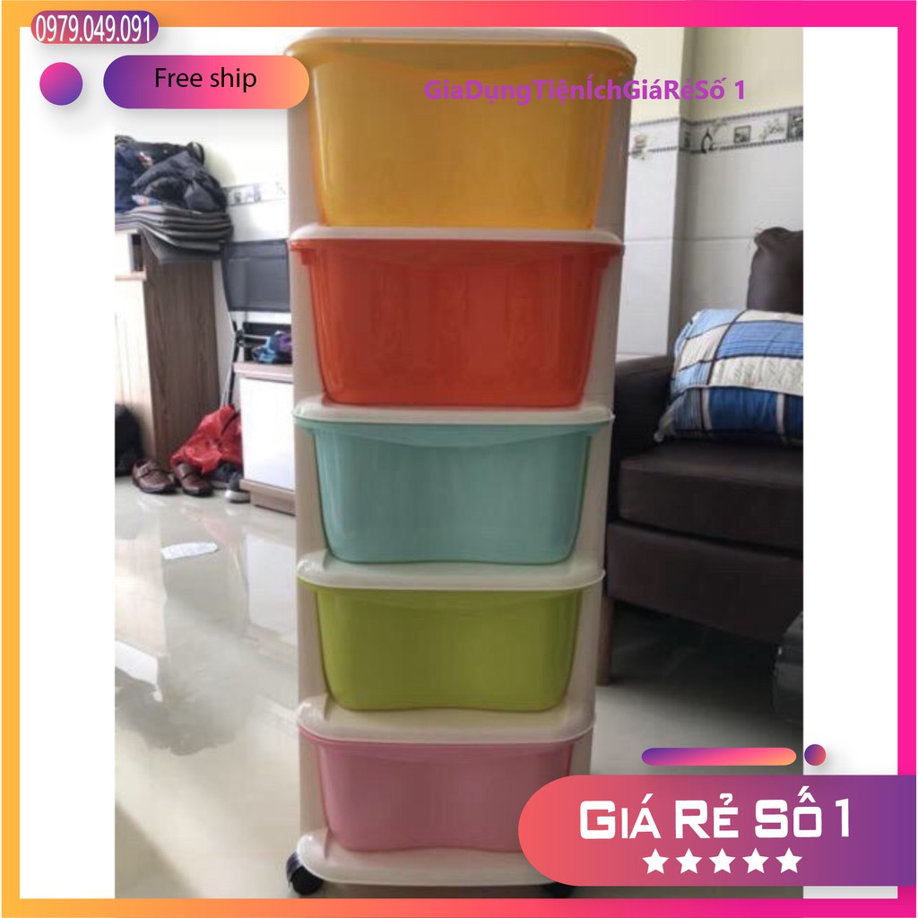 Tủ nhựa đa sắc ngăn kéo 5 tầng có bánh xe hàng Việt Nhật. Chất Lượng Cao-(Kt 36x36x94 cm)
