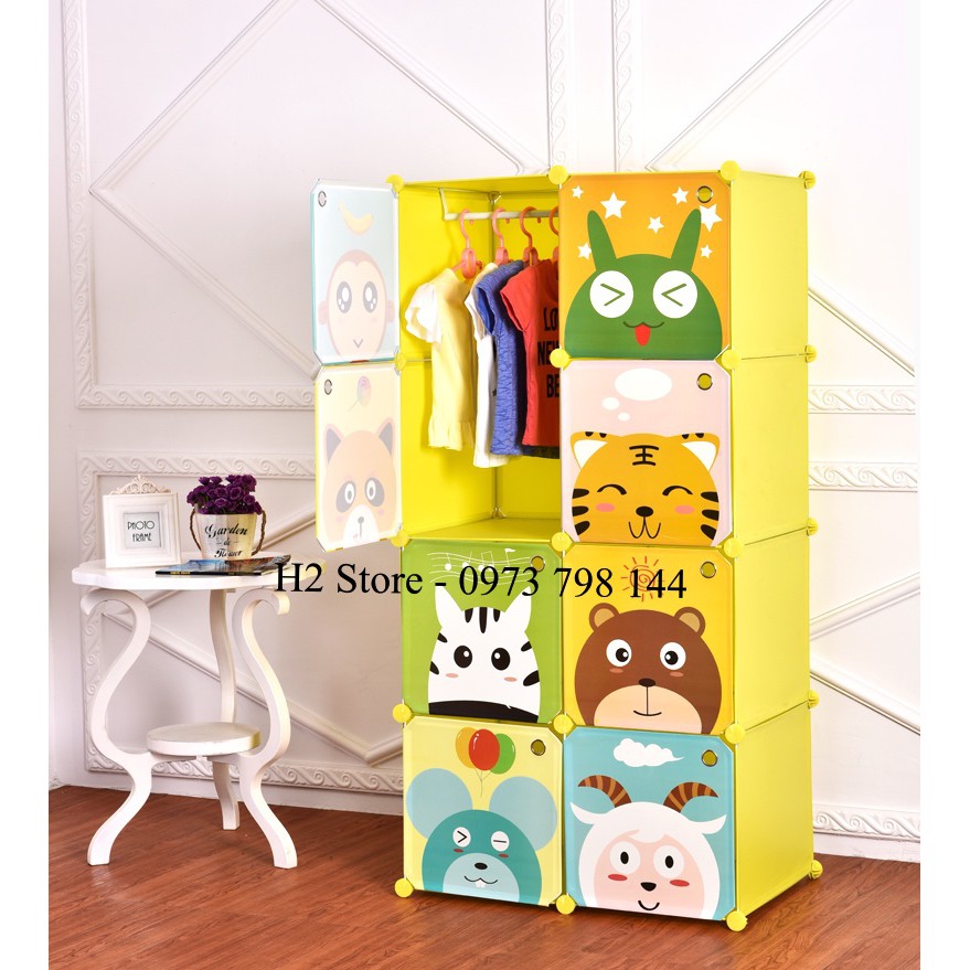 TỦ NHỰA ĐỂ ĐỒ CHO BÉ LẮP GHÉP THÔNG MINH 8 Ô CỬA THÚ NỬA MẶT C DỄ THƯƠNG ĐA NĂNG sâu 47cm