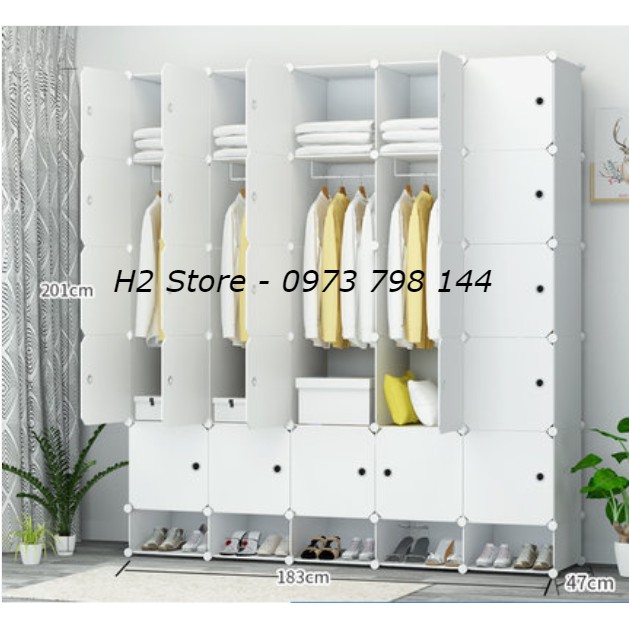 TỦ NHỰA ĐỂ ĐỒ ĐA NĂNG 25 Ô VÀ 5 Ô GIÀY CỬA TRẮNG ĐỤC LẮP GHÉP THÔNG MINH sâu 47cm🎯 Kích thước sau khi lắp: cao 2m, ngang 1m85, sâu 47cm