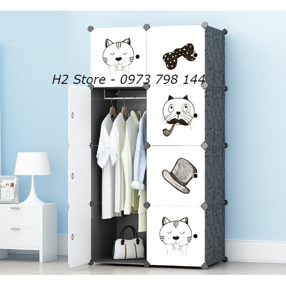TỦ NHỰA ĐỂ ĐỒ GIÁ RẺ LẮP GHÉP THÔNG MINH 8 Ô CỬA MÈO NƠ CUTE ĐA NĂNG CHO TRẺ sâu 47cm