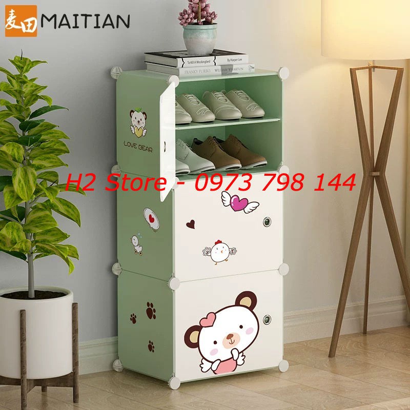 TỦ NHỰA ĐỂ ĐƯỢC 12 ĐÔI GIÀY, DÉP GỒM 6 Ô (chia ô) MÀU CỐM CỬA TRẮNG GẤU