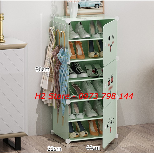 TỦ NHỰA ĐỂ ĐƯỢC 12 ĐÔI GIÀY, DÉP GỒM 6 Ô (chia ô) MÀU CỐM CỬA MẶT CƯỜI