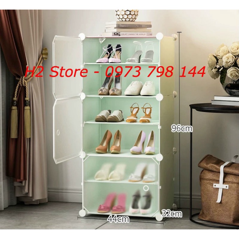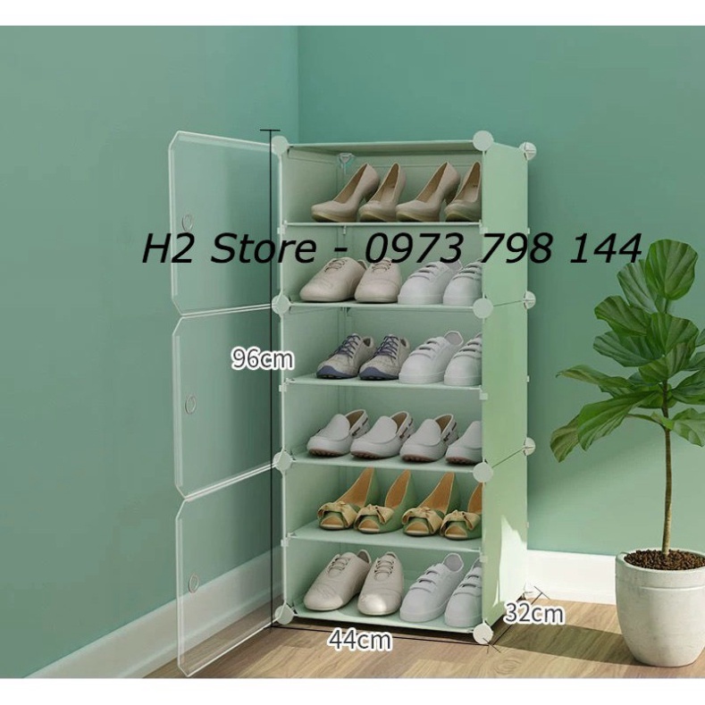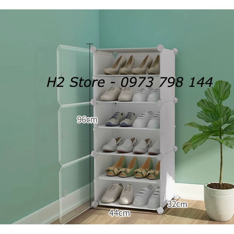 TỦ NHỰA ĐỂ ĐƯỢC 12 ĐÔI GIÀY, DÉP GỒM 6 Ô (chia ô) CỬA TRONG
