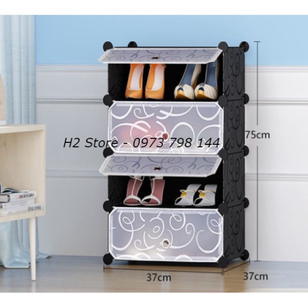 TỦ NHỰA ĐỂ GIÀY ĐA NĂNG THÔNG MINH 4 Ô VÁCH ĐEN, CỬA TRẮNG TRONG