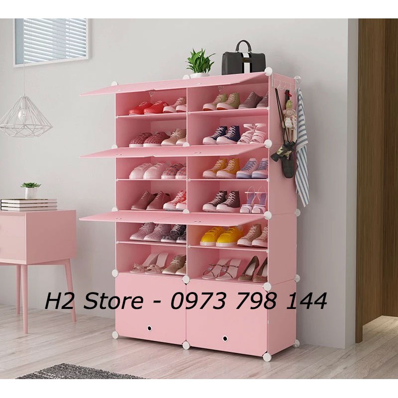 Giới thiệu TỦ NHỰA ĐỂ GIÀY DÉP ĐA NĂNG 16 Ô (chia ô) VÁCH HỒNG
