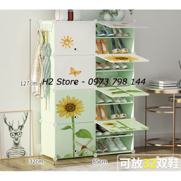 TỦ NHỰA ĐỂ GIÀY DÉP ĐA NĂNG THÔNG MINH 16 Ô (chia ô) VÁCH CỐM CỬA PHỐI MÀU HƯỚNG DƯƠNG