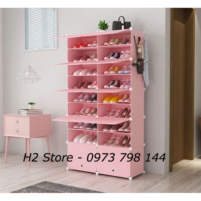 TỦ NHỰA ĐỂ GIÀY VÁCH HỒNG NHẠT 20 Ô (chia ô)