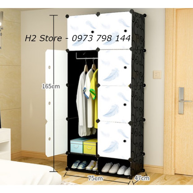 TỦ NHỰA ĐỂ QUẦN ÁO LẮP GHÉP ĐA NĂNG 8 Ô VÀ 2 Ô GIÀY CỬA LÔNG VŨ THÔNG MINH GIÁ RẺ 47cm🎯 Kích thước sau khi lắp: cao 1m65, ngang 74cm, sâu 47cm