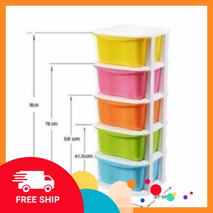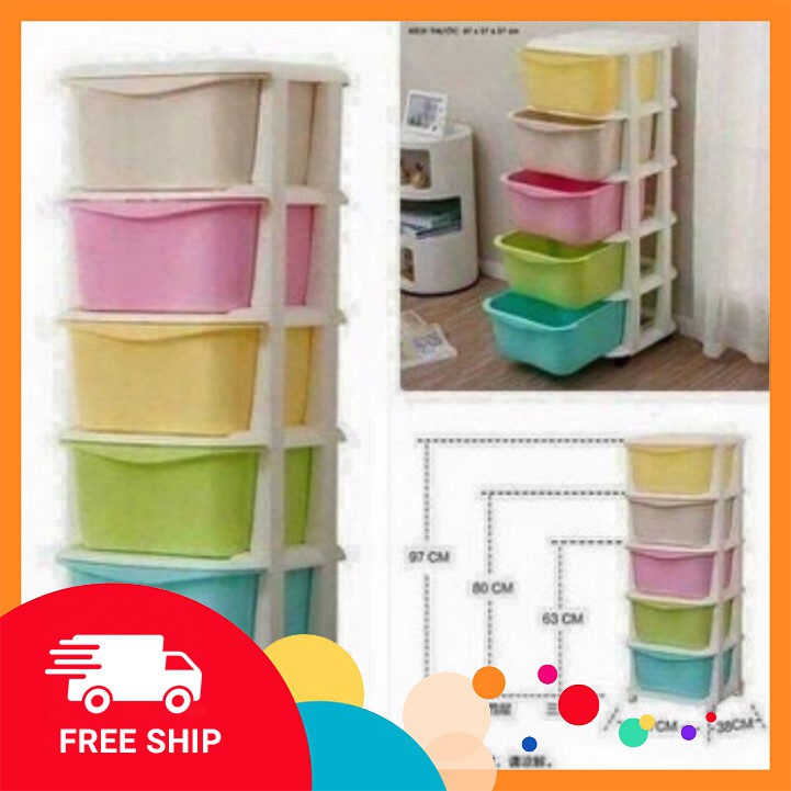 - Tủ được ngoại hình 5 ngăn kéo rất nhân thể dụng, mỗi ngăn sở hữu 1 màu sắc riêng giúp dễ dàng phân biệt từng ngăn và tô điểm thêm cho nội thất ngôi nhà bạn.