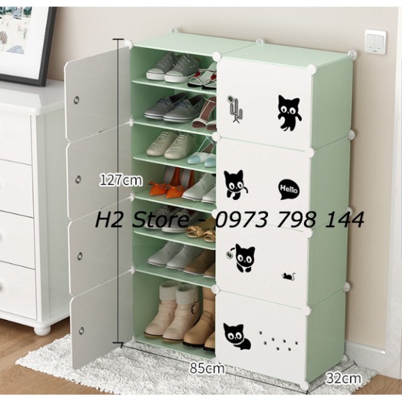 Giới thiệu TỦ NHỰA ĐỰNG GIÀY DÉP KIỂU MỚI 2 Ô ĐỂ BOOT VÀ 12 Ô GIÀY (chia ô) VÁCH MÀU CỐM CỬA TRẮNG MÈO ĐEN