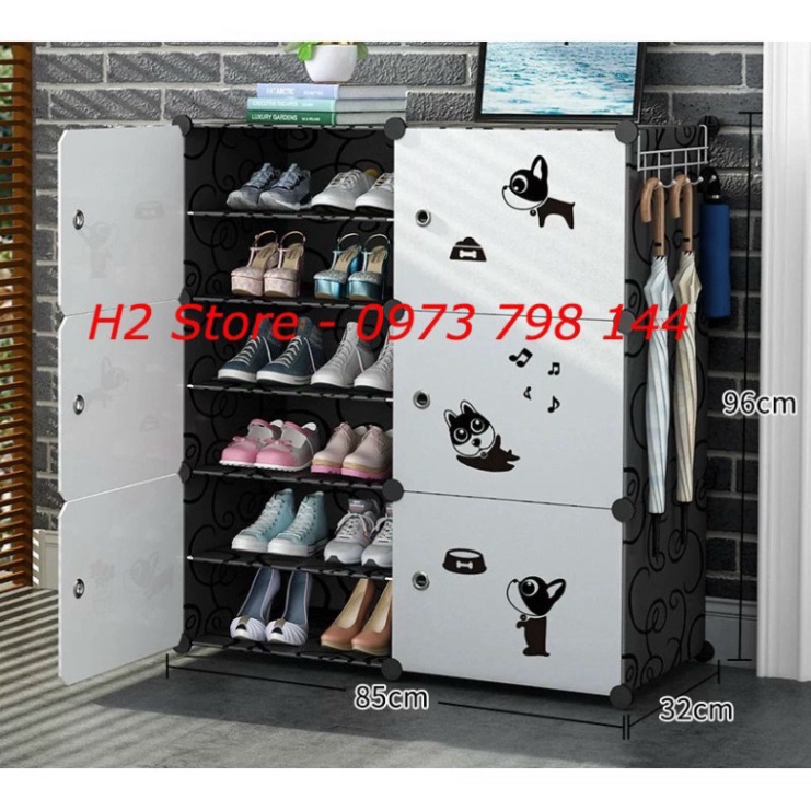 TỦ NHỰA ĐỰNG GIÀY DÉP KIỂU MỚI 12 Ô (chia ô) CỬA CÚN ĐEN