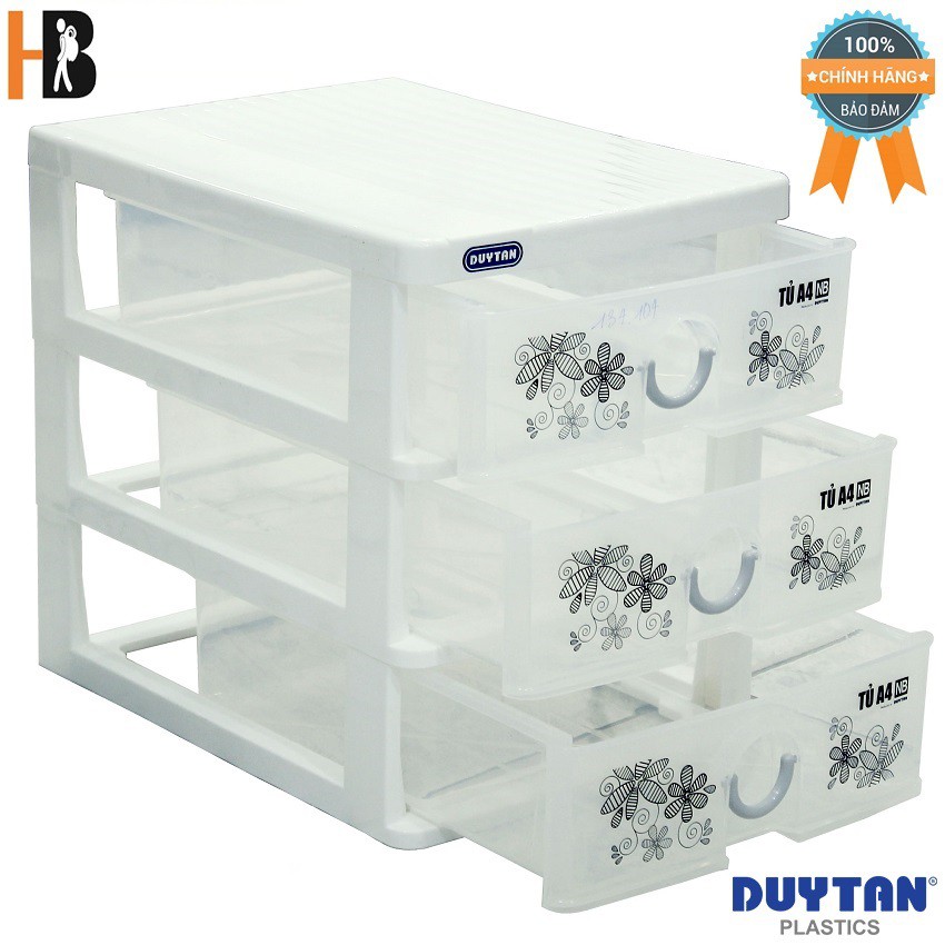 - Tủ nhựa Duy Tân A4 - 3 ngăn nắp bằng (26 x 34.2 x 31 cm) No. 343/3 được thiết kế gọn nhẹ phù hợp để văn phòng, nơi làm việc, cất giữ giấy tờ một cách tiện lợi hoặc có thể sử dụng trong gia đình để cất giữ giấy tờ và các vật dụng nhỏ cần thiết