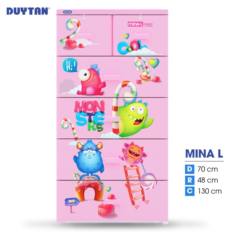 Tủ nhựa Duy Tân Mina L 5 tầng 6 ngăn có nhiều màu sắc hoa văn phù hợp với sở thích và không gian riêng của nhà bạn.