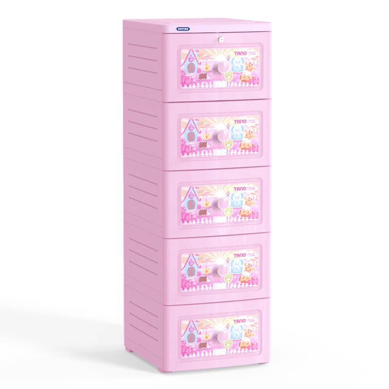 Tủ nhựa Duy Tân TANO 5 tầng (Hồng) - Họa tiết ngẫu nhiên
