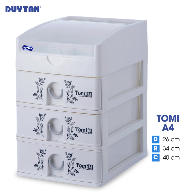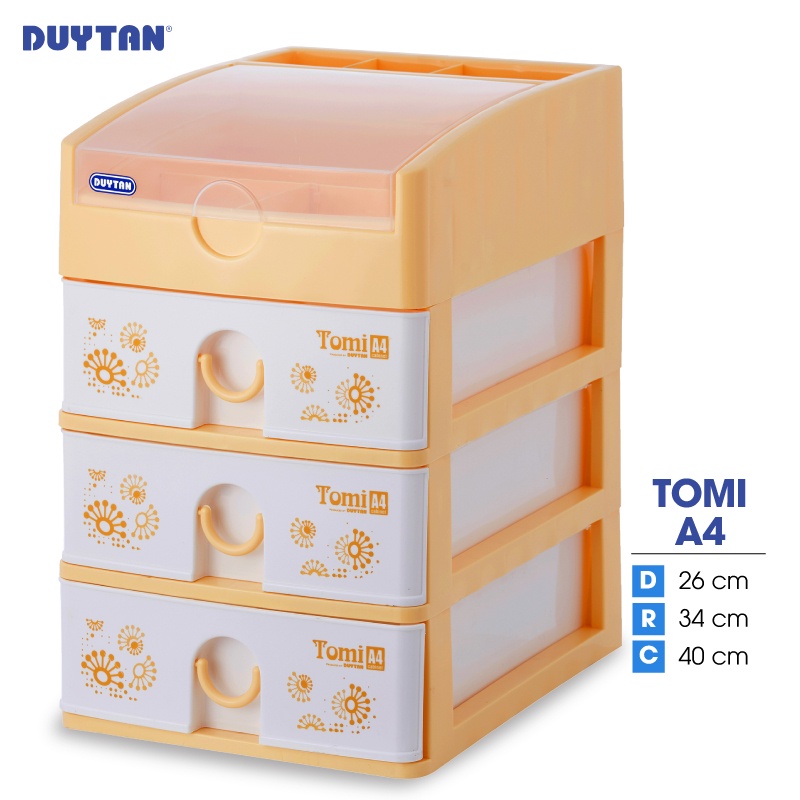Tủ nhựa Duy Tân Tomi A4 - 4 ngăn (26 x 34 x 41cm)Tủ nhựa Tomi A4 Duy Tân - 4 ngăn với thiết kế gọn nhẹ nhưng lại rất chắc chắn sẽ giúp bạn bảo quản và cất giữ những vật dụng nhỏ một cách ngăn nắp, tránh việc thất lạc trong quá trình sử dụng. Tủ với màu sắc tươi sáng và họa tiết trang nhã sẽ góp phần tô điểm cho không gian của bạn.