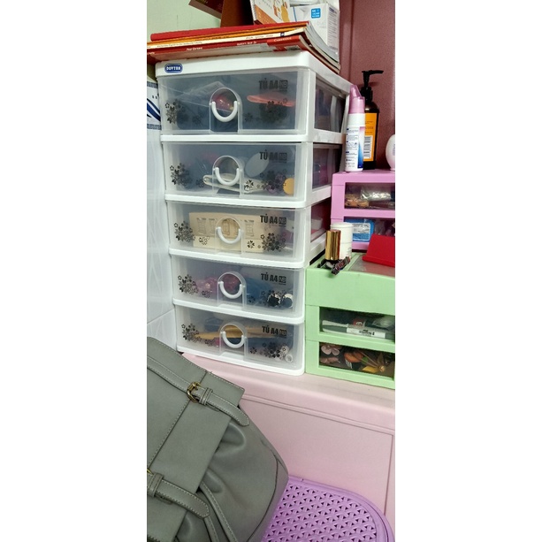 - Sản phẩm có 3-4 -5 ngăn, mỗi ngăn kéo đều có tay cầm, linh động khi sử dụng giúp bạn dễ dàng đựng và phân loại các vật dụng cá nhân cần thiết như chìa khóa xe, dụng cụ trang điểm, ngoài ra còn có thể sử dụng làm tủ thuốc cho gia đình.