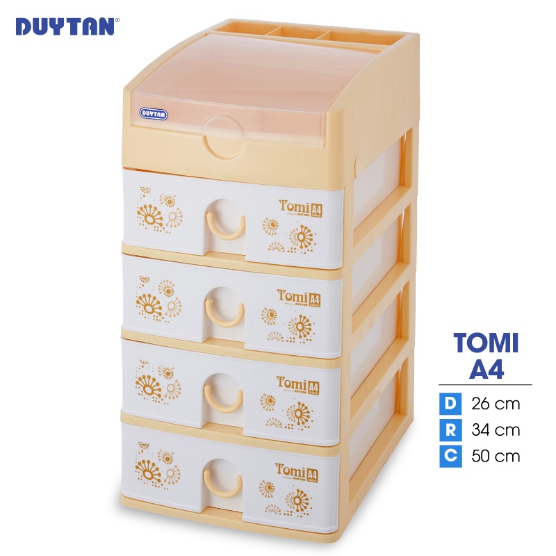 Tủ nhựa Duy Tân Tomi A4 - 5 ngăn (26 x 34 x 50cm)Tủ nhựa Tomi A4 Duy Tân - 5 ngăn với thiết kế gọn nhẹ nhưng lại rất chắc chắn sẽ giúp bạn bảo quản và cất giữ những vật dụng nhỏ một cách ngăn nắp, tránh việc thất lạc trong quá trình sử dụng. Tủ với màu sắc tươi sáng và họa tiết trang nhã sẽ góp phần tô điểm cho không gian của bạn.