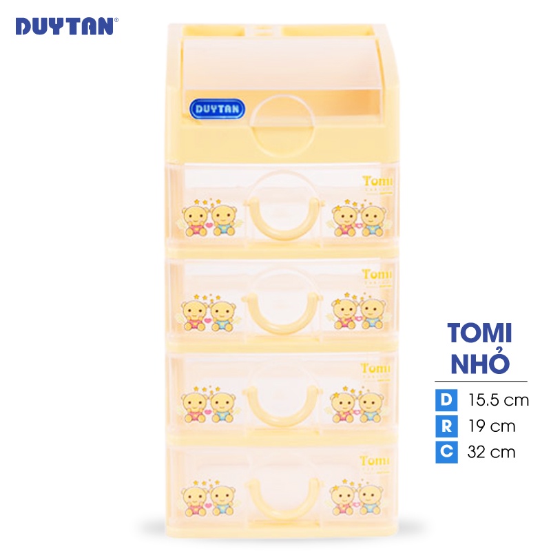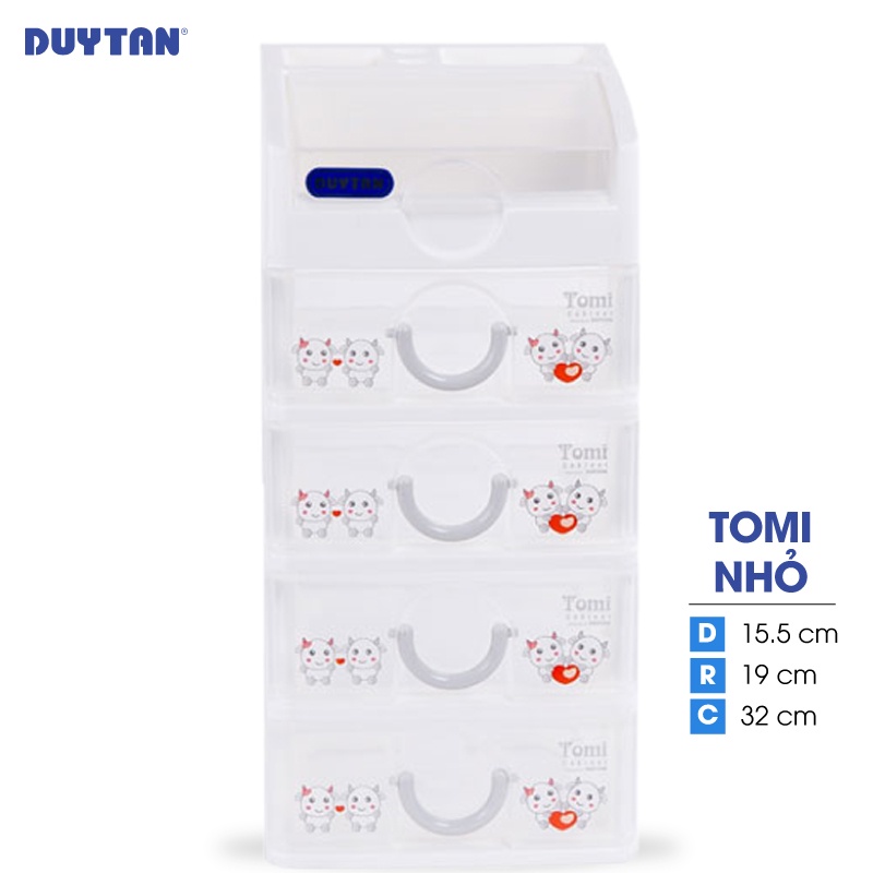 Tủ nhựa Duy Tân Tomi nhỏ - 5 ngăn (15.5x 19 x 32cm)Tủ nhựa Tomi nhỏ Duy Tân - 5 ngăn với thiết kế gọn nhẹ nhưng lại rất chắc chắn sẽ giúp bạn bảo quản và cất giữ những vật dụng nhỏ một cách ngăn nắp, tránh việc thất lạc trong quá trình sử dụng. Tủ với màu sắc tươi sáng và họa tiết trang nhã sẽ góp phần tô điểm cho không gian của bạn.