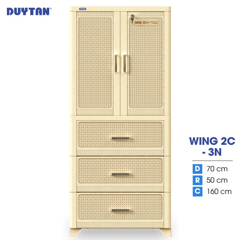 Tủ nhựa Duy Tân WING 2C - 2N có 2 cửa và 3 ngăn với nhiều màu sắc hoa văn phù hợp sở thích và không gian riêng của nhà bạn+ Kích thước tủ : Cao 160cm - rộng 70cm - sâu 50cm