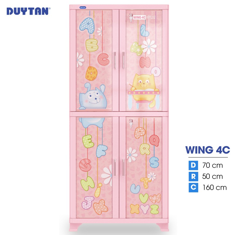Tủ nhựa Duy Tân WING 4C có 4 cửa với nhiều màu sắc hoa văn phù hợp sở thích và không gian riêng của nhà bạn+ Kích thước tủ : Cao 160cm - rộng 70cm - sâu 50cm