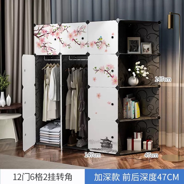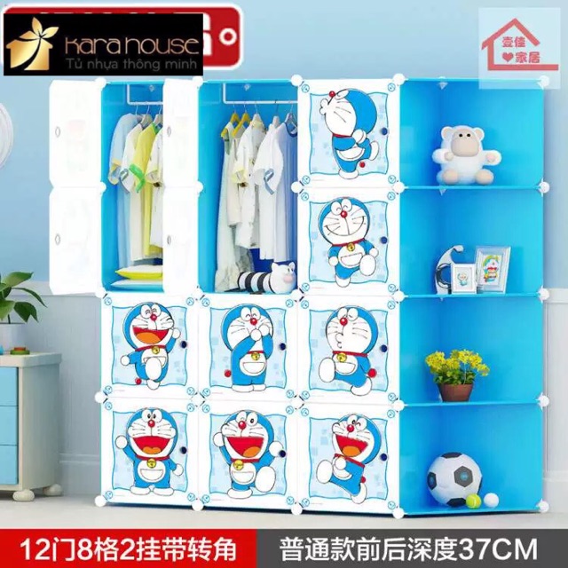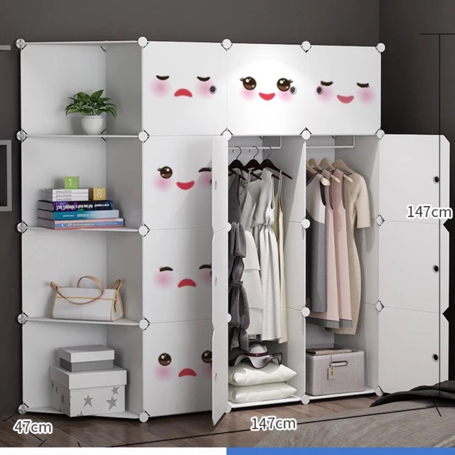 Tủ nhựa ghép 12 ô kèm 4 góc trắng cửa mặt cười sâu 47cm. Tặng kèm 3 treo đồ.