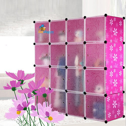 TỦ NHỰA GHÉP 16 NGĂN HỒNG HOA