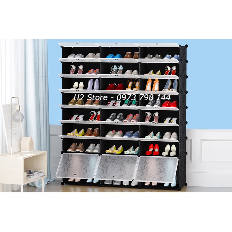 TỦ NHỰA GHÉP 3 Ô TO ĐỂ BOOT+ 18 Ô NHỎ ĐỂ GIÀY DÉP ĐA NĂNG THÔNG MINH CỬA TRẮNG TRONG