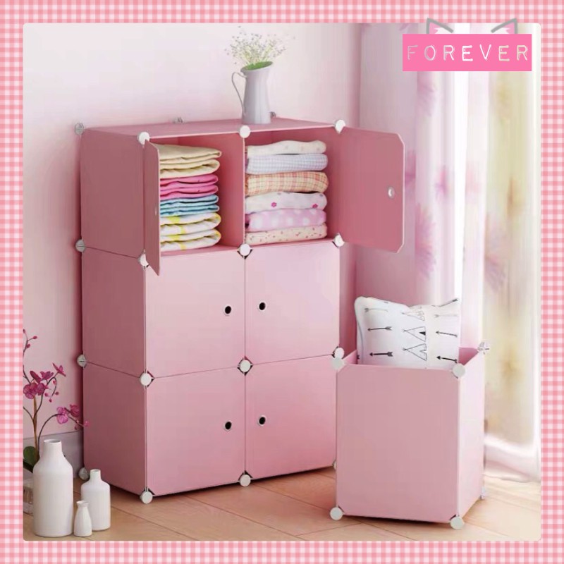 Tủ nhựa ghép 6 ô + 1 ô lẻ full màu hồng nhạt size to sâu 47 -Bảo hành 1 năm 1 đổi 1 (chọn kiểu theo phân loại)