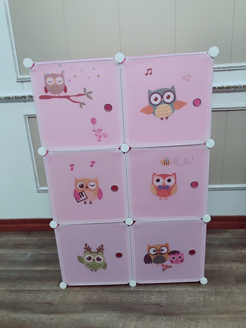 Tủ nhựa ghép 6 ô kèm 2 ô giày sâu 47cm. Tặng 1 treo đồ. Mẫu siêu cute cho bé