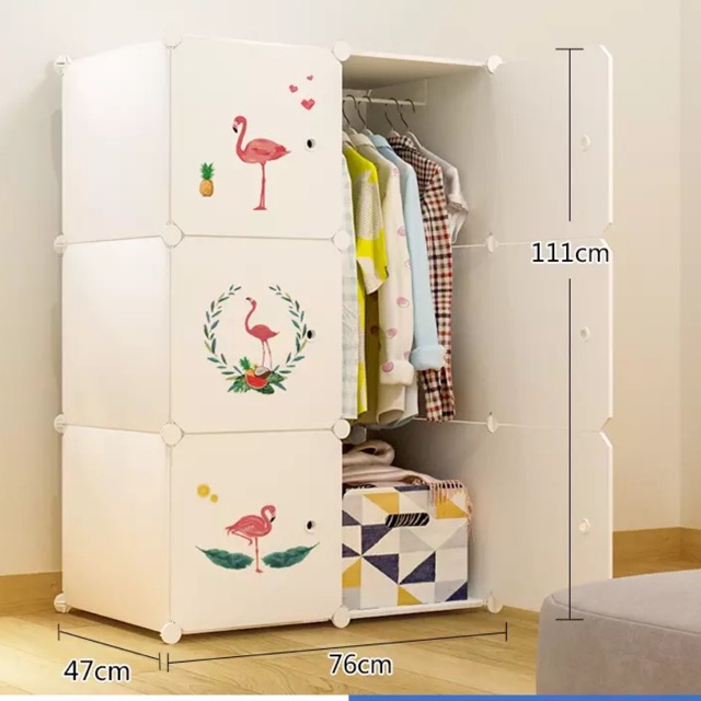 ☘️TỦ đựng quần áo 6 ô lắp hoàn thiện: cao 110cm x rộng 75cm x sâu 47cm. or sâu 37cm