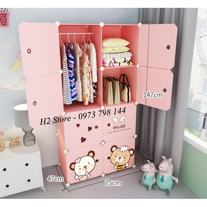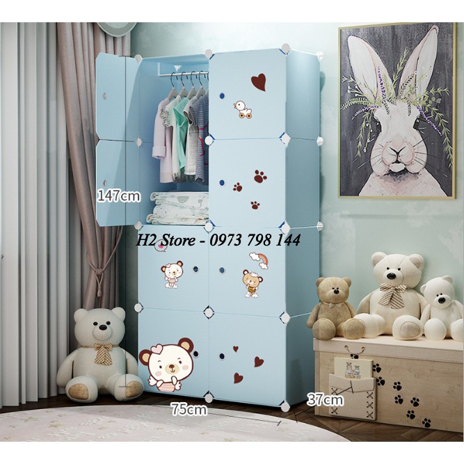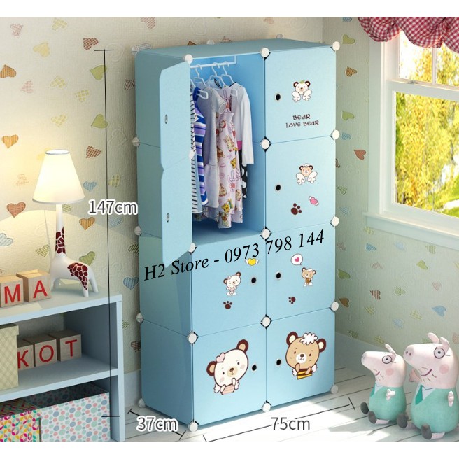 TỦ NHỰA GHÉP 8 Ô CỬA GẤU TREO ĐỒ ĐA NĂNG THÔNG MINH sâu 47cm