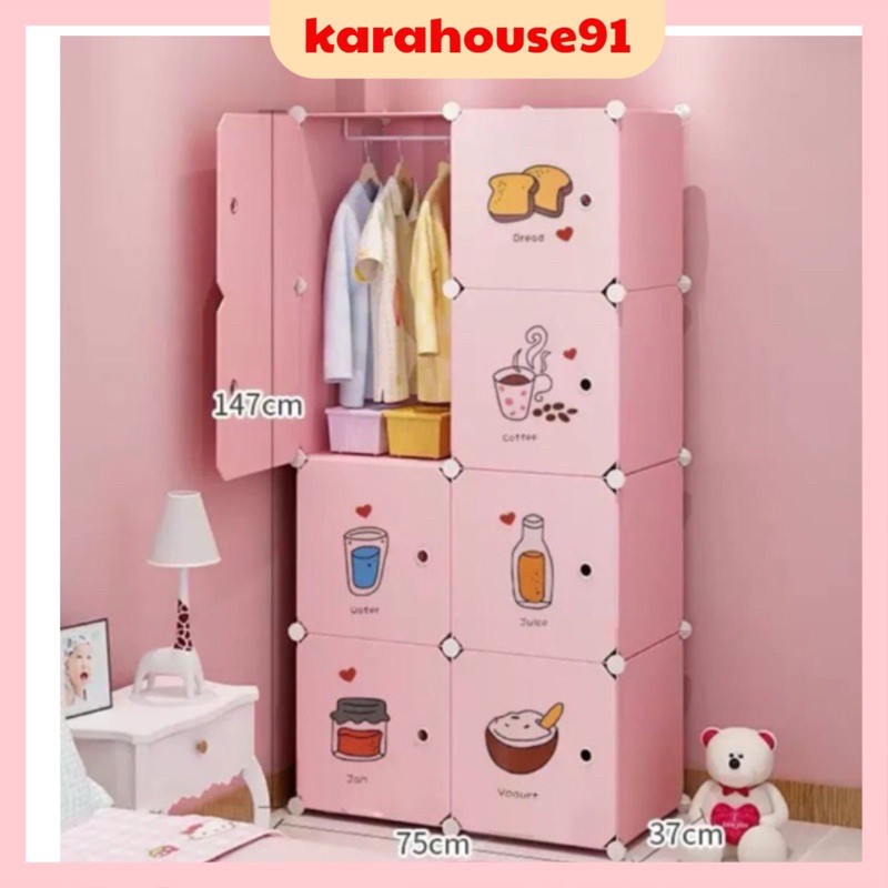TỦ NHỰA GHÉP 8 Ô HỒNG CỬA THÚ SIZE 47cm. Tặng kèm 1 treo đồ.