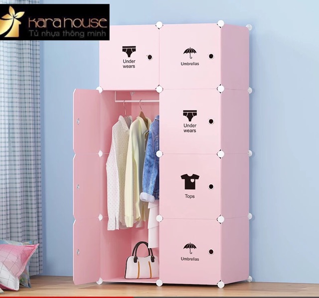Giới thiệu TỦ NHỰA GHÉP 8 Ô HỒNG CỬA THÚ SIZE 47cm. Tặng kèm 1 treo đồ.